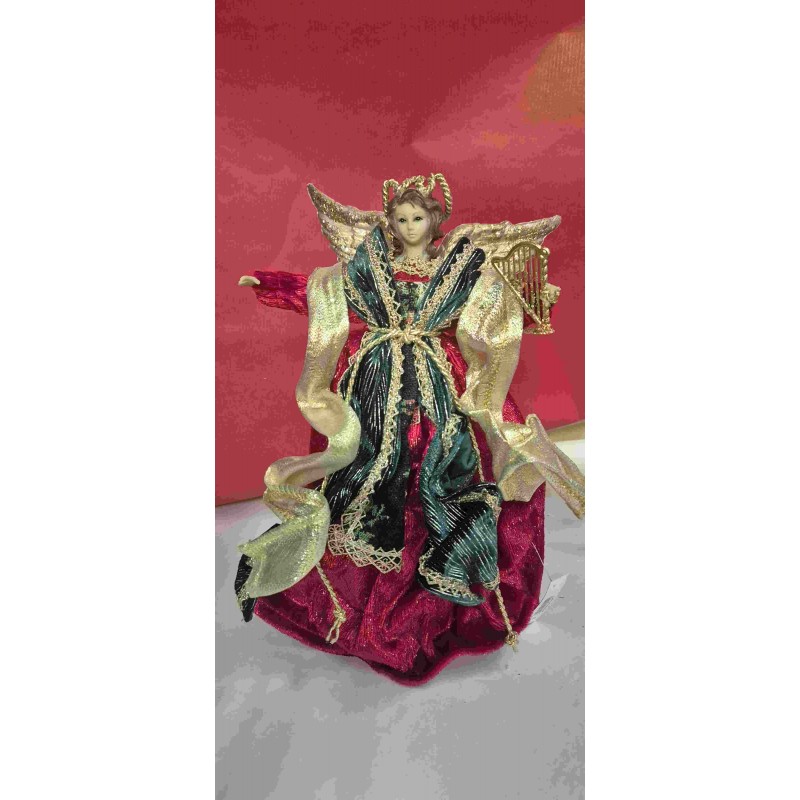 Ange de cime rouge et doré avec une couronne et une lyre