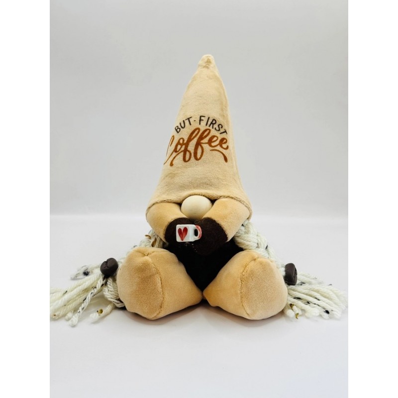 Chaque Gonk mesure 15 centimètres de haut, y compris leur chapeau. Ils ont un corps en polaire marron et un chapeau d'elfe en polaire douce avec l'inscription "Mais d'abord le café" sur le chapeau, chaque gnome tient une tasse de café. Veuillez noter que nos gnomes ne sont pas des jouets et sont plutôt destinés aux collectionneurs de 14 ans et plus. Fait main en Grande Bretagne.